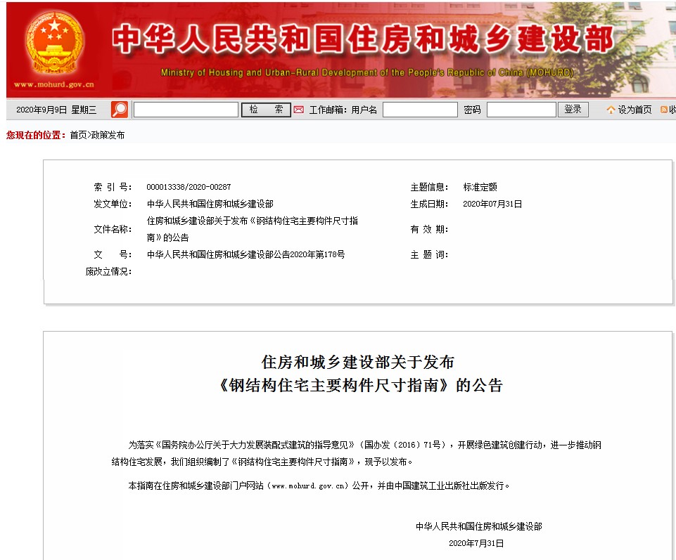 為落實(shí)《國務(wù)院辦公廳關(guān)于大力發(fā)展裝配式建筑的指導(dǎo)意見》、開展綠色建筑創(chuàng)建行動、進(jìn)一步推動鋼結(jié)構(gòu)住宅發(fā)展,住房和城鄉(xiāng)建設(shè)部組織編制了《鋼結(jié)構(gòu)住宅主要構(gòu)件尺寸指南》,并于日前印發(fā)。
